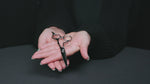 schwarze Friseurschere The Rock aus Edelstahl mit ergonomischem Design und feiner Klingenstruktur in Hand gehalten